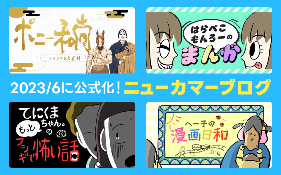 2023年6月に新しく「ライブドアブログ公式ブロガー」に仲間入りしたブロガーさんをご紹介させていただきます。大喜利、子育て絵日記、ホラー漫画、お仕事漫画など、個性あふれる4つのブログが公式ブログに加わりました!